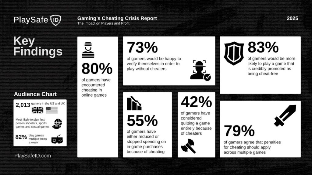 รายงานใหม่จาก PlaySafe ID เปิดเผยว่า 80% ของนักเล่นเกมในสหราชอาณาจักรและสหรัฐอเมริกาเคยประสบกับการโกงในเกมออนไลน์