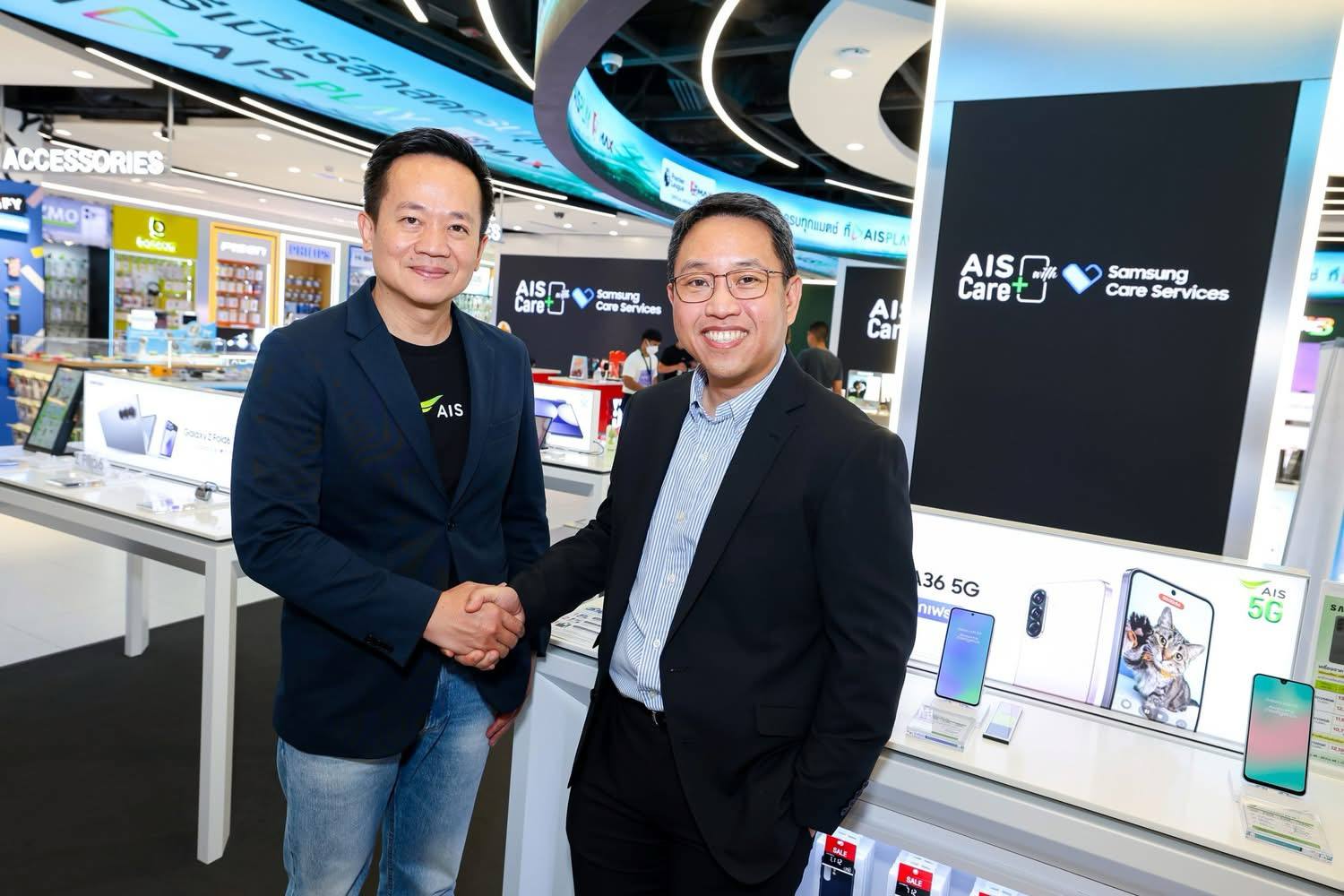 AIS ผู้นำเครือข่ายอัจฉริยะ 5G ของไทย ร่วมกับ ซัมซุง ผู้นำเทคโนโลยีสมาร์ทโฟนระดับโลก และ bolttech บริษัทผู้นำด้านอินชัวร์เทคระดับโลก เปิดตัวบริการใหม่ “AIS Care+ with Samsung Care Services ” ครั้งแรกในเอเชียตะวันออกเฉียงใต้ บริการดูแลสมาร์ทโฟนและแท็บเล็ตที่ครอบคลุมความเสียหายทุกด้าน มอบความอุ่นใจตั้งแต่วันแรกที่ซื้อ ครบจบในที่เดียว อาทิ ตกแตก พัง สูญหาย เปลี่ยนหน้าจอฟรี 1 ครั้งต่อปี, บริการซ่อมเครื่องไม่จำกัดจำนวนครั้ง ไม่จำกัดมูลค่าการเคลม ตลอดอายุสัญญา, เปลี่ยนเครื่อง (Switch) ได้สูงสุด 2 ครั้ง/ปี และขอรับเครื่องทดแทน (Replace) 1 ครั้ง/ปี สำหรับลูกค้าที่ซื้อมือถือซัมซุงกับ AIS รับสิทธิพิเศษและการดูแลแบบครบวงจรได้ที่ Samsung Authorized Service Center ทั่วประเทศ สมัครใช้บริการได้ที่ AIS Shop, Telewiz, AIS Buddy ทุกสาขาทั่วประเทศ หรือร้านค้าที่ร่วมรายการ โดยจะพร้อมให้บริการตั้งแต่วันที่ 22 ก.ค. เป็นต้นไป