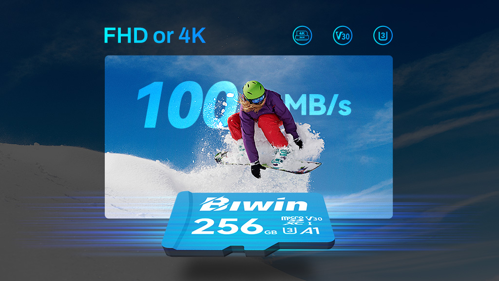 BIWIN แนะนำ MS100 microSD Card การ์ดหน่วยความจำสำหรับผู้ใช้งานที่ต้องการประสิทธิภาพระดับมืออาชีพในชีวิตประจำวัน ด้วยความเร็วในการอ่านสูงสุด 100 MB/s และรองรับมาตรฐาน UHS-I U3 / V30 ช่วยให้การบันทึกวิดีโอความละเอียด HD และ Full HD ดำเนินไปอย่างราบรื่น พร้อมรองรับการถ่ายโอนข้อมูลที่รวดเร็วและการใช้งานแอปพลิเคชันที่ตอบสนองได้ฉับไว MS100 มาพร้อมความจุสูงสุดถึง 256 GB ใช้งานได้กับอุปกรณ์หลากหลาย ทั้งสมาร์ตโฟน แท็บเล็ต กล้องติดรถยนต์ และระบบความปลอดภัยในบ้าน อีกทั้งยังผ่านการออกแบบให้ทนต่อแรงกระแทก ฝุ่น ความร้อนจัด และรังสี X-ray เพื่อให้มั่นใจได้ว่าข้อมูลสำคัญจะปลอดภัยในทุกสถานการณ์