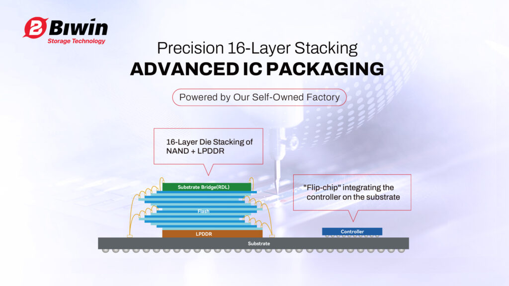 ด้วยความเร็ว ความสามารถในการปรับขนาด และการพัฒนาเทคโนโลยีที่สำคัญ ได้แก่ การผลิตแม่ชิปด้วยเครื่องพิมพ์แบบเรียงซ้อน 16 ชั้นจำนวนมาก และบรรจุภัณฑ์แม่พิมพ์แบบบางเฉียบขนาด 30–40 ไมโครเมตรที่รองรับพื้นที่จัดเก็บข้อมูลความจุสูงแบบบางเฉียบ ที่ได้รับการตอบรับอย่างมาโดยเฉพาะตลาดสมาร์ทโฟนและสมาร์ทดีไวซ์ต่าง ๆ นอกจากนี้แพลตฟอร์มทดสอบที่ BIWIN พัฒนาขึ้นยังผสมผสานเข้ากับกระบวนการ ATE, burn-in และ SLT ซึ่งช่วยเพิ่มเสถียรภาพและผลผลิตของผลิตภัณฑ์ให้ใช้งานได้หลากหลาย