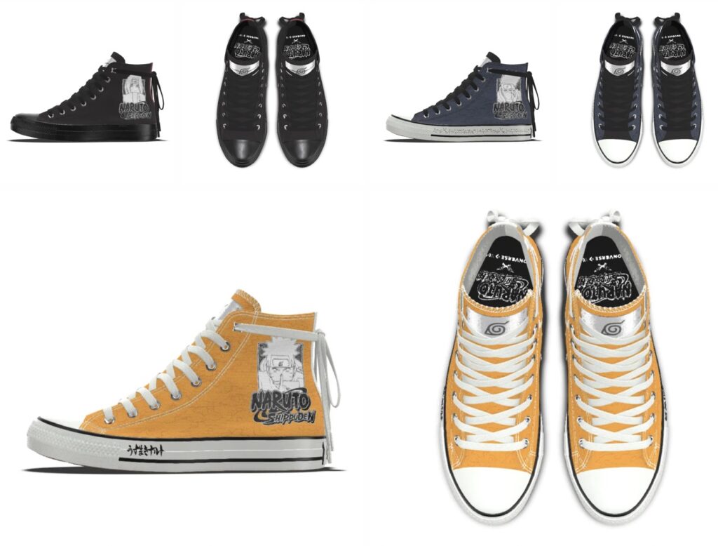 คอลเลกชันนี้ประกอบด้วยรองเท้ารุ่น Chuck Taylor All Star ที่ได้รับแรงบันดาลใจจากตัวละครชื่อดังในเรื่อง Naruto Shippuden เช่น Naruto, Sasuke, Gaara, Kakashi และ Itachi รวมถึงเสื้อยืด แจ็กเก็ต และกระเป๋าเป้แบบลิมิเต็ดอิดิชัน นอกจากนี้ยังมีรุ่น Converse by You ซึ่งให้ลูกค้าเลือกออกแบบได้เองภายใต้ธีม Naruto Shippuden โดยจะมีทั้งหมด 9 แบบ เริ่มต้นที่คู่ละ 95 ดอลลาร์สหรัฐ (ประมาณ 3,490 บาท)