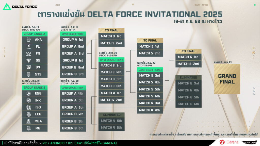 แฟน ๆ จากทั่วโลกสามารถร่วมชมการถ่ายทอดสดและส่งแรงเชียร์ให้กับตัวแทนทีมไทย ในการชิงชัยตำแหน่งแชมป์อันทรงเกียรติของรายการ Delta Force Invitational ติดตามรายละเอียดเพิ่มเติมและร่วมลุ้นความมันส์ไปพร้อมกัน!