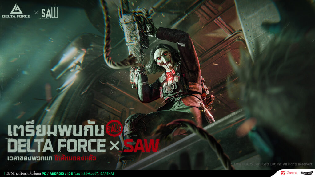 นอกจากนี้ Garena® Delta Force ยังได้เปิดเผยความร่วมมือครั้งล่าสุดกับ SAW แฟรนไชส์ภาพยนตร์สยองขวัญชื่อดังจาก Lionsgate ซึ่งจะมาถึงเร็ว ๆ นี้ โดยผู้เล่นจะสามารถปลดล็อกไอเทมพิเศษภายในเกมได้ เช่น สกินโอเปอเรเตอร์ Collab – SAW, สกินอาวุธสุดหลอน, Charm – Billy-Wolf, ไอเทม Billy-Wolf และอีกมากมาย แฟนเกมและแฟนภาพยนตร์ต้องติดตามชม!