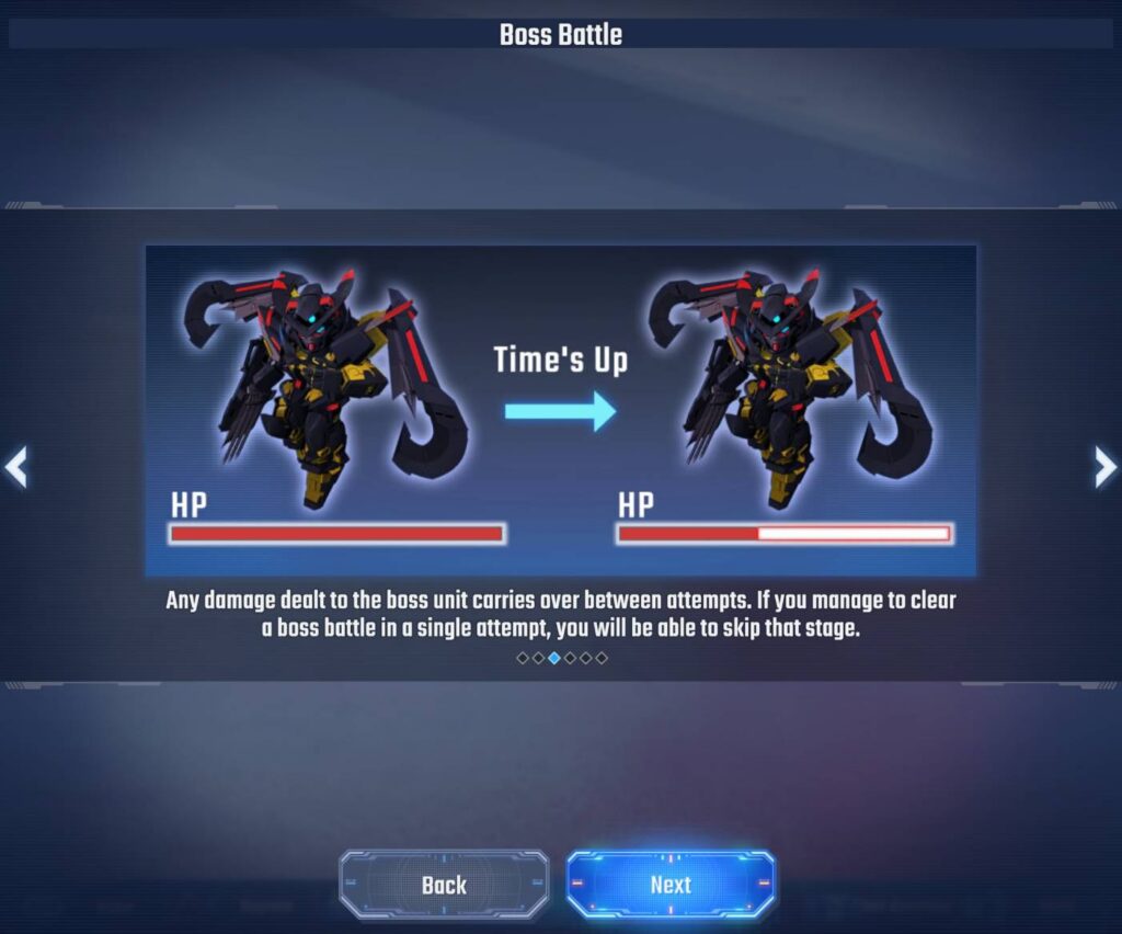 • ดาเมจที่โจมตีบอสจะสะสมระหว่างการต่อสู้ หากสามารถเคลียร์บอสได้ในครั้งเดียว จะสามารถกด Skip ด่านนั้นได้