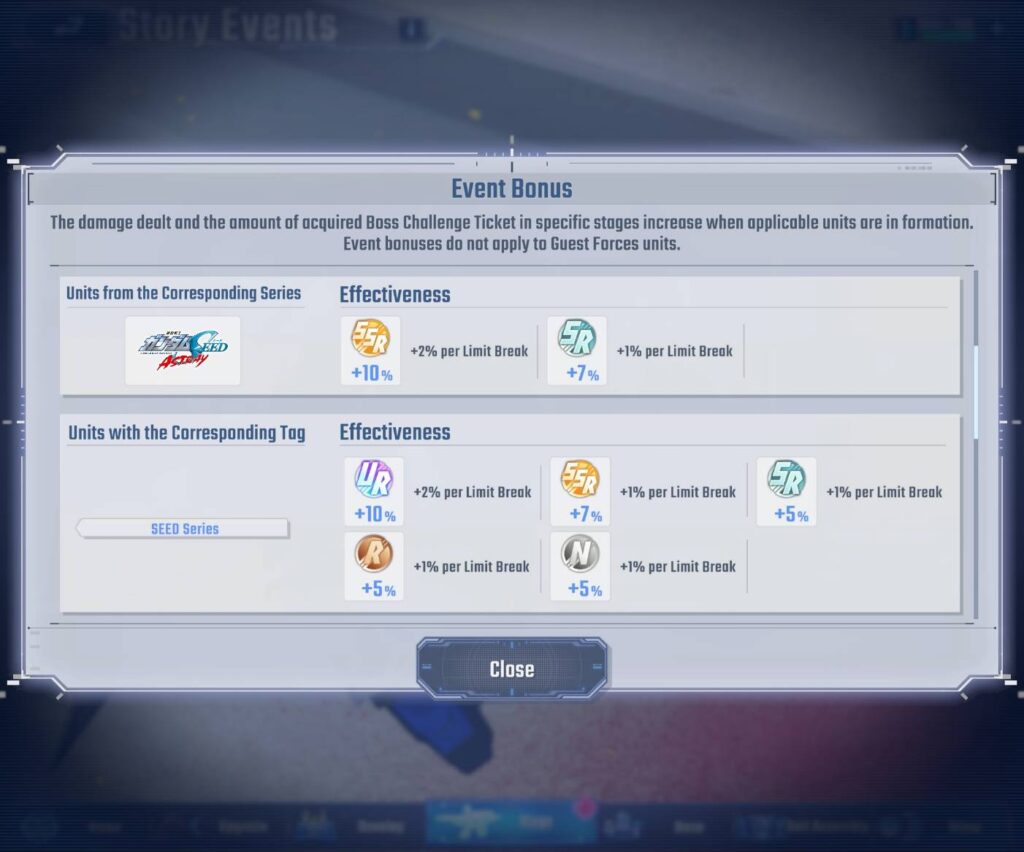 • ยูนิตที่ได้รับโบนัสกิจกรรมจะสร้างความเสียหายได้มากขึ้น และได้รับตั๋วเพิ่มเมื่อผ่านด่าน