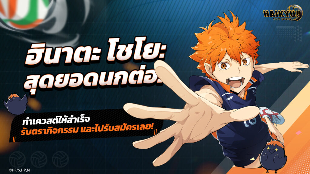 พร้อมที่จะทะยานไปกับ ฮินาตะ โชโย, โทบิโอะ คาเงยามะ และทีม HAIKYU!! คนอื่น ๆ แล้วหรือยัง? ดาวน์โหลด HAIKYU!! FLY HIGH ได้แล้ววันนี้ที่ App Store และ Google Play แล้วเตรียมพร้อมลงสนามได้เลย!
