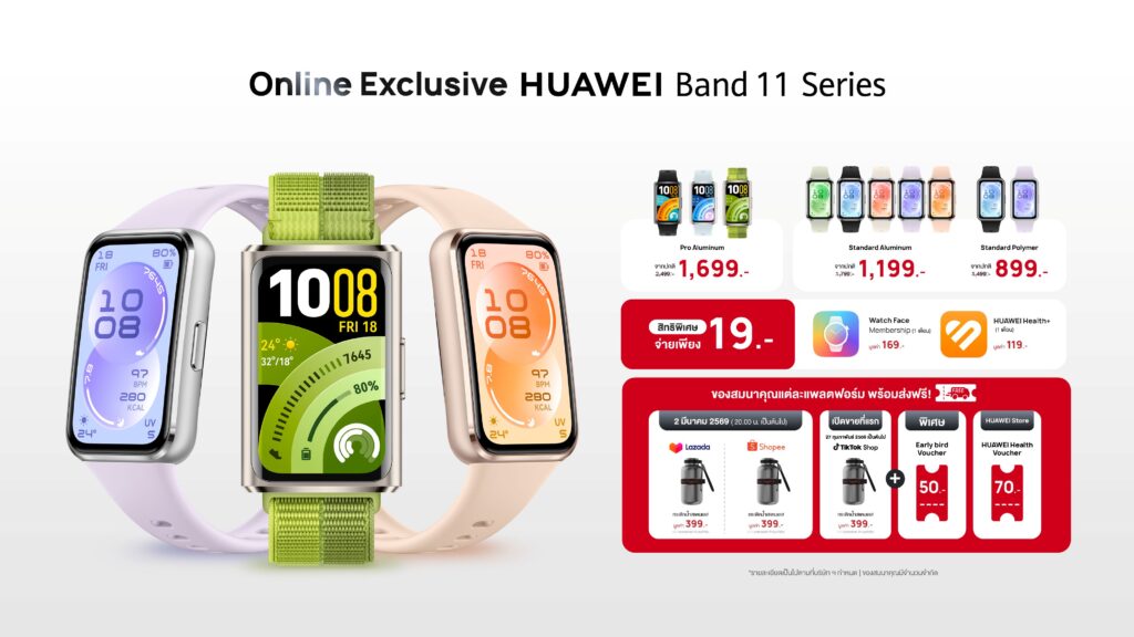 HUAWEI Band 11 Series จำหน่ายผ่านช่องทางออนไลน์เท่านั้น แบ่งเป็น 3 รุ่นย่อย ได้แก่