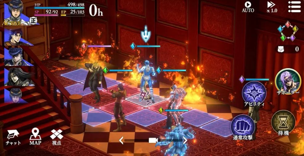 ตัวเกมแบ่งออกเป็นบท ๆ ที่อ้างอิงเนื้อหาตั้งแต่ Part 1 ถึง Part 6 ของอนิเมะ Jojo’s Bizarre Adventure โดยมาในรูปแบบ TRPG มุมมองจากด้านบน ผู้เล่นสามารถสนุกไปกับโหมดเนื้อเรื่องที่ถ่ายทอดเหตุการณ์จากอนิเมะผ่านการต่อสู้เชิงกลยุทธ์และคัตซีน รวมถึงมีโหมด PvP จัดอันดับ นอกจากนี้ยังมีสารานุกรมภายในเกมที่สามารถชมโมเดล 3D ของตัวละครและสแตนด์ รวมถึงฟังประโยคเด็ดจากอนิเมะได้อีกด้วย ระบบการหารายได้ของเกมเน้นไปที่กาชาตัวละคร