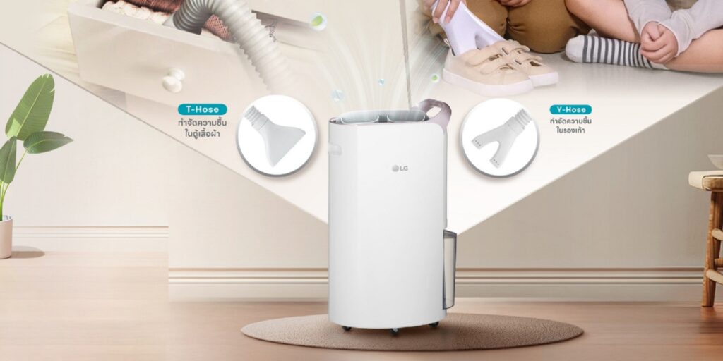 อย่างไรก็ตาม แม้ผ้าแห้งแล้วแต่จัดเก็บในที่ที่อากาศไม่ถ่ายเท ในช่วงหน้าฝนก็ยังมีโอกาสเกิดกลิ่นอับได้ เครื่องลดความชื้นแอลจีก็มีโหมดเป่าแห้งเฉพาะจุด Shoes Dry Y-Hose ใช้คู่กับสายเป่ารูปตัว Y ใช้ได้รองเท้าให้แห้งเร็วทันใจไม่ง้อแดด และสายเป่ารูปตัว T (Closet Dry T-Hose) ลดความชื้นจากตู้เสื้อผ้าหรือลิ้นชัก มั่นใจได้ว่าคุณจะได้สวมเสื้อผ้าแห้งสนิทแน่นอน