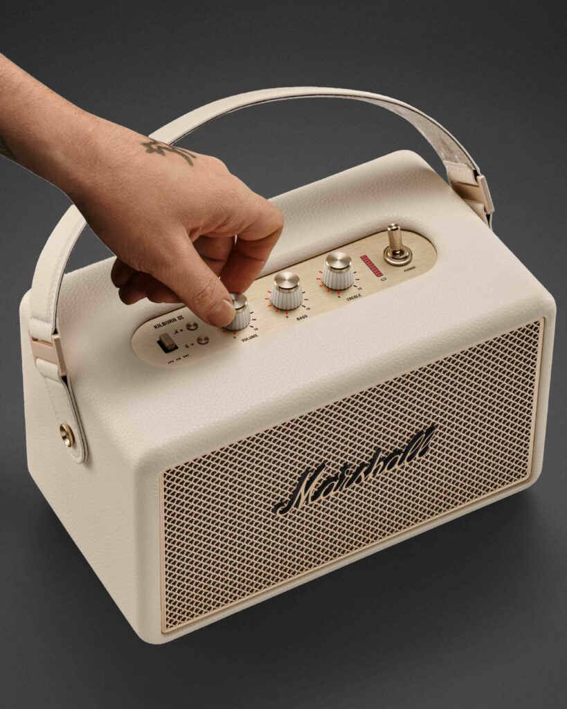 ดีไซน์ของ Kilburn lll ยังคงรักษาความคลาสสิกที่ได้รับแรงบันดาลใจจากแอมป์กีตาร์และเสน่ห์ของความ rock ‘n’ roll ได้อย่างลงตัว ไม่ว่าจะเป็นปุ่มควบคุมสุดเท่ และสายหิ้วบุผ้ากำมะหยี่ที่ถอดเปลี่ยนได้ด้วยตัวยึดแบบสายกีตาร์