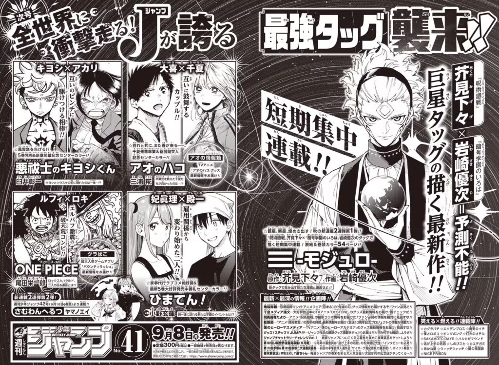 Gege Akutami ผู้เขียน Jujutsu Kaisen กลับมาอีกครั้งพร้อมผลงานมังงะเรื่องใหม่ในชื่อ Modulo ซึ่งมีกำหนดตีพิมพ์ครั้งแรกในนิตยสาร Weekly Shonen Jump ฉบับที่ 41 วันที่ 8 กันยายน 2025 โดยคราวนี้ได้ Yuji Iwasaki (ผู้วาด Cipher Academy) มารับหน้าที่วาดภาพ ส่วน Akutami ยังคงเขียนเนื้อเรื่องเช่นเดิม