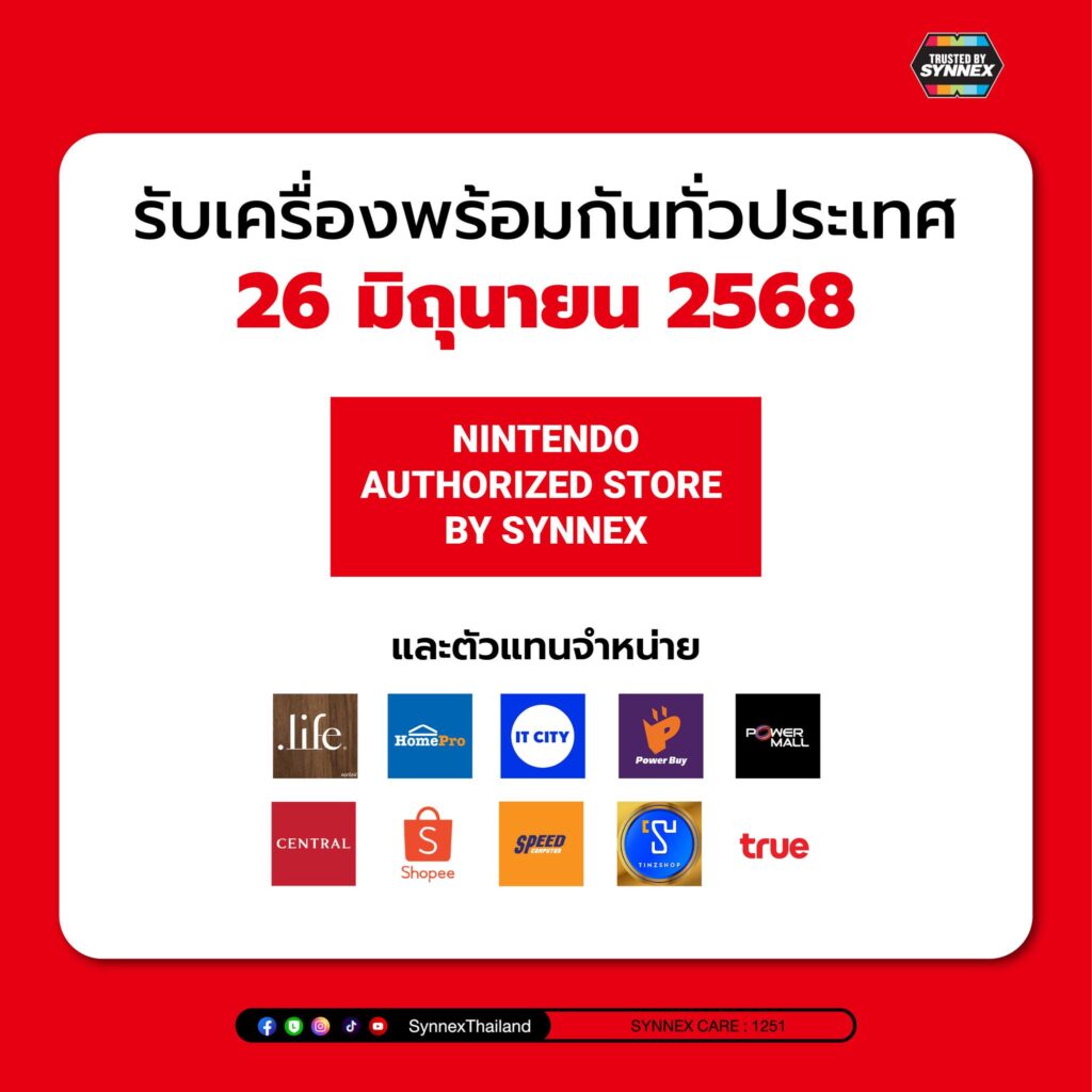 โดยผู้ที่สั่งจองจะสามารถรับเครื่องได้ในวันที่ 26 มิถุนายน 2568 ที่ Nintendo Authorized Store by Synnex ชั้น 3 สยามพารากอน และร้านตัวแทนจำหน่าย .life, Home Pro, IT CITY, Power Buy, Power Mall, Central, Shopee, Speed Computer, TinzShop และ true