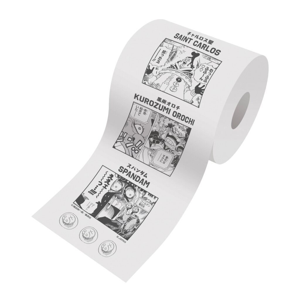 สินค้าไฮไลต์อย่าง “ONE PIECE Toilet Paper” ถูกออกแบบให้มีลวดลายจากฉากสุดกวนของเหล่าตัวร้ายในเรื่อง ไม่ว่าจะเป็น Spandam, Saint Charlos, Kurozumi Orochi หรือ Alvida และยังมีตัวละครอีกมากมายที่แฟน ๆ รู้จักกันดี โดยคอนเซปต์ของสินค้าคือการ “ชำระความแค้น” กับตัวร้ายที่น่าหมั่นไส้เหล่านี้ในชีวิตประจำวัน