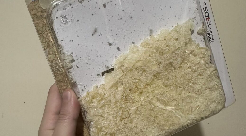 ภาพถ่ายของเคส TPU สำหรับเครื่อง Nintendo 3DS XL รุ่นลาย Dragon Quest VIII ที่ทาง HORI ได้รับลิขสิทธิ์อย่างเป็นทางการ กลายเป็นไวรัลในโลกออนไลน์ หลังจากที่มันสลายตัวกลายเป็นเศษผงคล้ายเศษขนมปังจากการเก็บไว้นานหลายปี