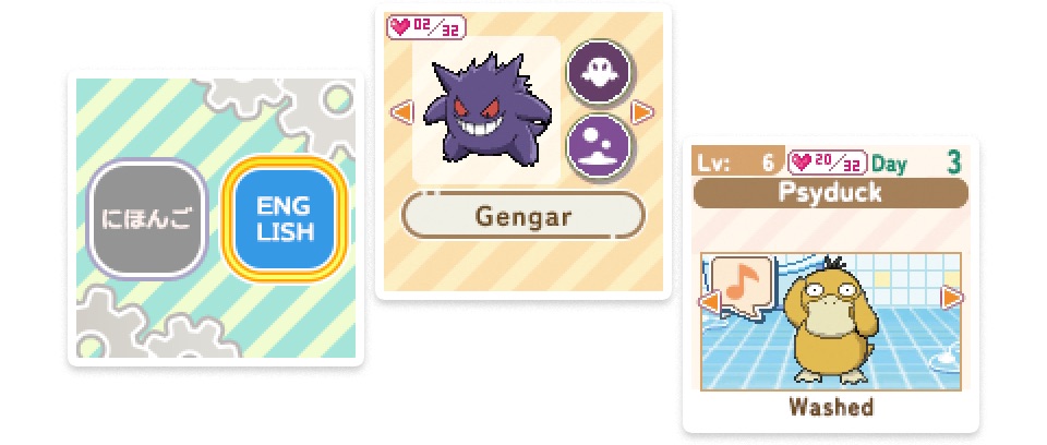 เมื่อผู้เล่นลูบหรือแตะตัวเครื่อง โปเกมอนที่ปรากฏบนหน้าจอจะตอบสนองด้วยแอนิเมชันและปฏิกิริยาที่แตกต่างกันตามลักษณะการสัมผัส เช่น การลูบเบา ๆ อย่างต่อเนื่องจะให้ผลที่ต่างจากการแตะอย่างรวดเร็ว
