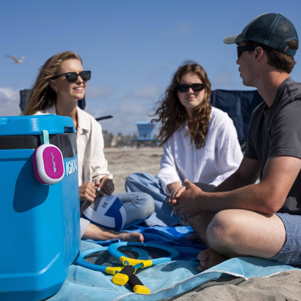 JLab Pop Party ลำโพงบลูทูธพกพาขนาดเล็ก มาพร้อมดีไซน์ Ultra-Portable และสายคล้องแบบถอดได้ ให้คุณพกพาไปปาร์ตี้ได้ทุกที่ ทุกเวลา ติดตั้งไดร์เวอร์แบบฟูลเรนจ์ขนาด 2 นิ้ว และพาสซีฟวูฟเฟอร์ขนาด 2 นิ้ว มอบกำลังขับ 5 วัตต์ ถ่ายทอดเสียงเบสได้อย่างหนักแน่น ควบคุมการใช้งานได้ง่ายด้วยปุ่มมัลติฟังก์ชันเพียงปุ่มเดียว พร้อมมาตรฐานกันน้ำกันฝุ่นระดับ IP55 และแบตเตอรี่ที่ใช้งานได้ต่อเนื่องสูงสุด 8 ชั่วโมงเมื่อปิดไฟ RGB หรือ 5 ชั่วโมงเมื่อเปิดไฟ RGB