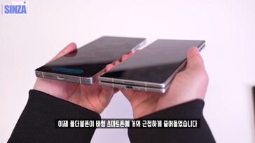 ในการเปรียบเทียบโดยตรง นอกจากบานพับที่บางลงอย่างชัดเจนแล้ว หน้าจอด้านนอกขนาด 6.5 นิ้วยังมากับอัตราส่วนที่กว้างขึ้นเป็น 21:9 แทนที่จะเป็น 22:9 เช่นเดิม เมื่อเทียบกับรุ่น Special Edition ความแตกต่างอาจไม่มากนัก แต่ Samsung ก็สามารถปรับให้บางลงได้อีกเช่นกัน รายงานก่อนหน้านี้ยังระบุว่าน้ำหนักลดลงจาก 239 กรัมใน Galaxy Z Fold 6 เหลือ 215 กรัมในรุ่นใหม่ นอกจากนี้ Galaxy Z Fold 7 ยังมีความหนาเพียง 4.5 มม. เมื่อกางออก วิดีโอยังแสดงให้เห็นกล้องแบบเจาะรูบนหน้าจอด้านใน ไม่ใช่กล้องซ่อนใต้จอ ซึ่งตรงกับภาพเรนเดอร์ที่เคยปล่อยออกมาก่อนหน้า ขอบหน้าจอก็ถูกลดขนาดลงเล็กน้อยเช่นกัน