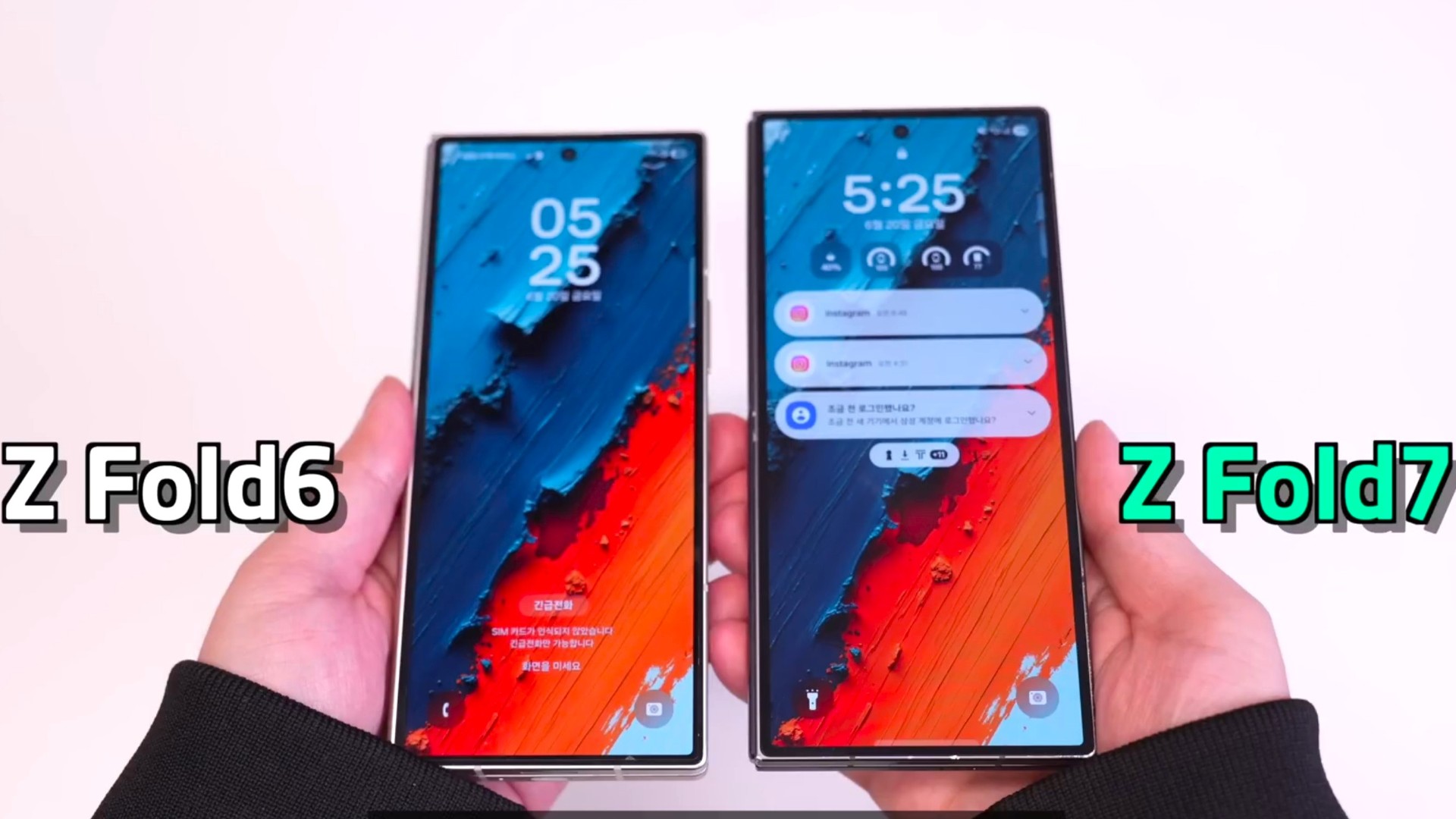 ในการเปรียบเทียบโดยตรง นอกจากบานพับที่บางลงอย่างชัดเจนแล้ว หน้าจอด้านนอกขนาด 6.5 นิ้วยังมากับอัตราส่วนที่กว้างขึ้นเป็น 21:9 แทนที่จะเป็น 22:9 เช่นเดิม เมื่อเทียบกับรุ่น Special Edition ความแตกต่างอาจไม่มากนัก แต่ Samsung ก็สามารถปรับให้บางลงได้อีกเช่นกัน รายงานก่อนหน้านี้ยังระบุว่าน้ำหนักลดลงจาก 239 กรัมใน Galaxy Z Fold 6 เหลือ 215 กรัมในรุ่นใหม่ นอกจากนี้ Galaxy Z Fold 7 ยังมีความหนาเพียง 4.5 มม. เมื่อกางออก วิดีโอยังแสดงให้เห็นกล้องแบบเจาะรูบนหน้าจอด้านใน ไม่ใช่กล้องซ่อนใต้จอ ซึ่งตรงกับภาพเรนเดอร์ที่เคยปล่อยออกมาก่อนหน้า ขอบหน้าจอก็ถูกลดขนาดลงเล็กน้อยเช่นกัน