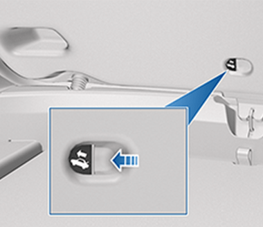 - กระโปรงหลัง ให้กดปุ่มที่มีไฟสว่างให้แน่นค้างไว้ในทิศทางตามลูกศรเพื่อปลดสลัก ขณะที่กดปุ่มต้องดันฝากระโปรงหลังให้เปิดออกด้วย