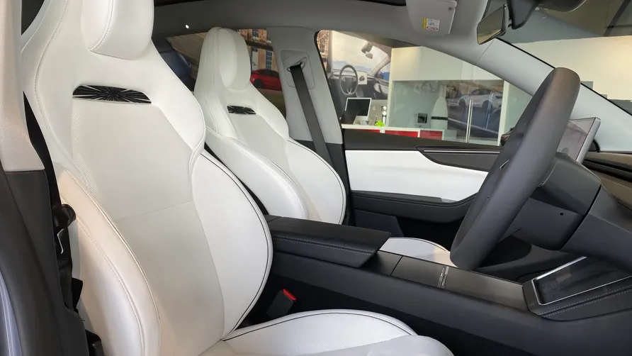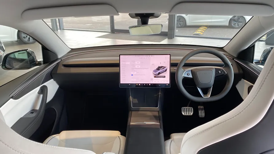 ภายในห้องโดยสาร Tesla อัปเกรดหน้าจอส่วนกลางจาก 15.4 นิ้ว เป็น 16 นิ้ว ความละเอียดสูงขึ้น 80% ซึ่งมีเฉพาะรุ่น Performance เท่านั้น เบาะคู่หน้าแบบ Performance มีระบบทำความร้อนและระบายอากาศ พร้อมพนักพิงที่กระชับขึ้น พื้นผิวตกแต่งด้วยคาร์บอนไฟเบอร์แท้ทั้งบนแดชบอร์ดและแผงประตู ฟีเจอร์มาตรฐานอื่น ๆ ยังคงอยู่ครบ เช่น หลังคาพาโนรามา หน้าจอด้านหลังขนาด 8 นิ้ว และระบบ Autopilot