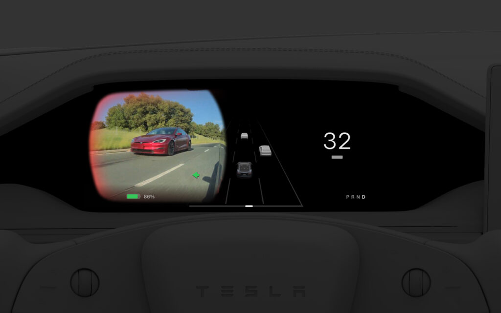 Tesla เพิ่มฟีเจอร์ใหม่ กล้อง Blind Spot แสดงบนหน้าปัดคนขับ (Instrument Panel) เพื่อให้ผู้ขับมองเห็นจุดบอดได้ชัดเจนโดยไม่ต้องละสายตาจากถนน