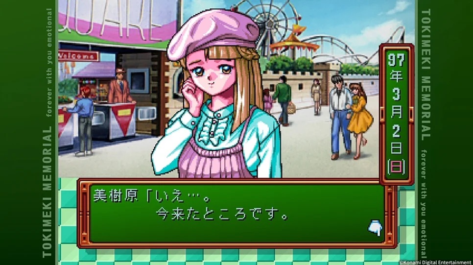 Tokimeki Memorial ถือเป็นเกมจำลองชีวิตและออกเดตที่โด่งดังจากยุค 90 โดยผู้เล่นจะสวมบทนักเรียนมัธยมปลายตลอดสามปี ต้องบริหารเวลาเรียน เวลาว่าง และสร้างความสัมพันธ์กับสาว ๆ เพื่อให้พวกเธอสารภาพรักในตอนจบของเกม จุดเด่นคือระบบที่ซับซ้อนและตัวเลือกจำนวนมาก รวมถึงการที่เพื่อนสนิทในเกมอย่าง Yoshio สามารถคบหากับตัวละครหญิงบางคนได้ (แต่จะไม่ยุ่งกับคนที่ผู้เล่นกำลังตามจีบ)